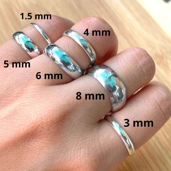 Wider bands touch more of your finger, so they often feel tighter than a narrow band in the same ring size. That is why many people need to go up half to one full size when switching from 6mm to 8mm.